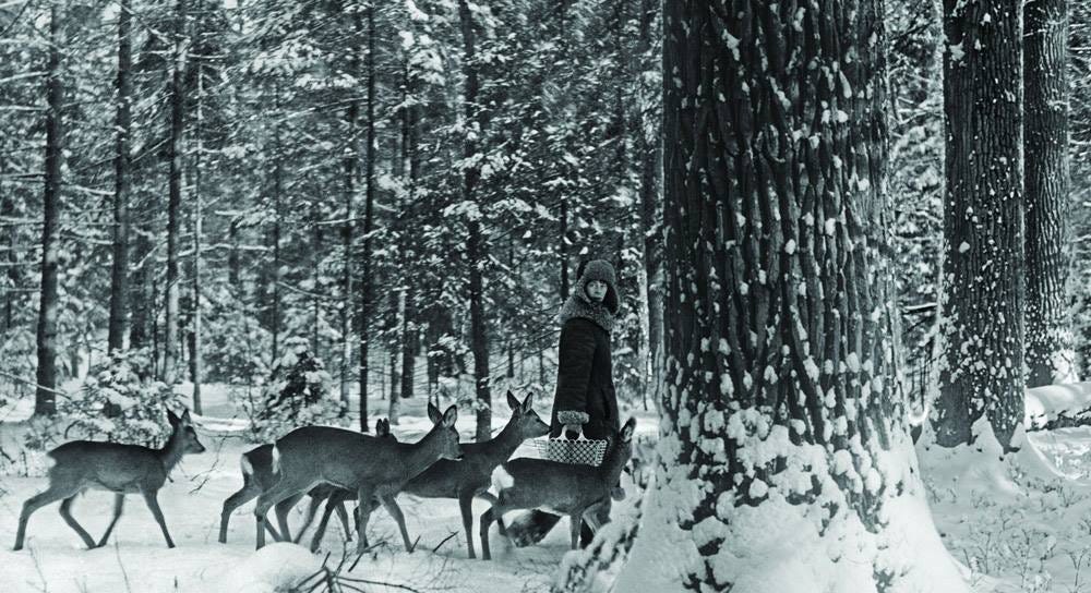 Uma mulher amamenta sete corças com leite de vacas. O propósito é observá-las sem que sintam medo. A mulher é Simona Kossak, e o procedimento está descrito na Acta Theriologica, 1981 1. As corças estão no bosque de Białowieża, na fronteira da Polónia com a Bielorrússia, o que resta da floresta gigantesca que ocupou as planícies europeias há cinco mil anos.
